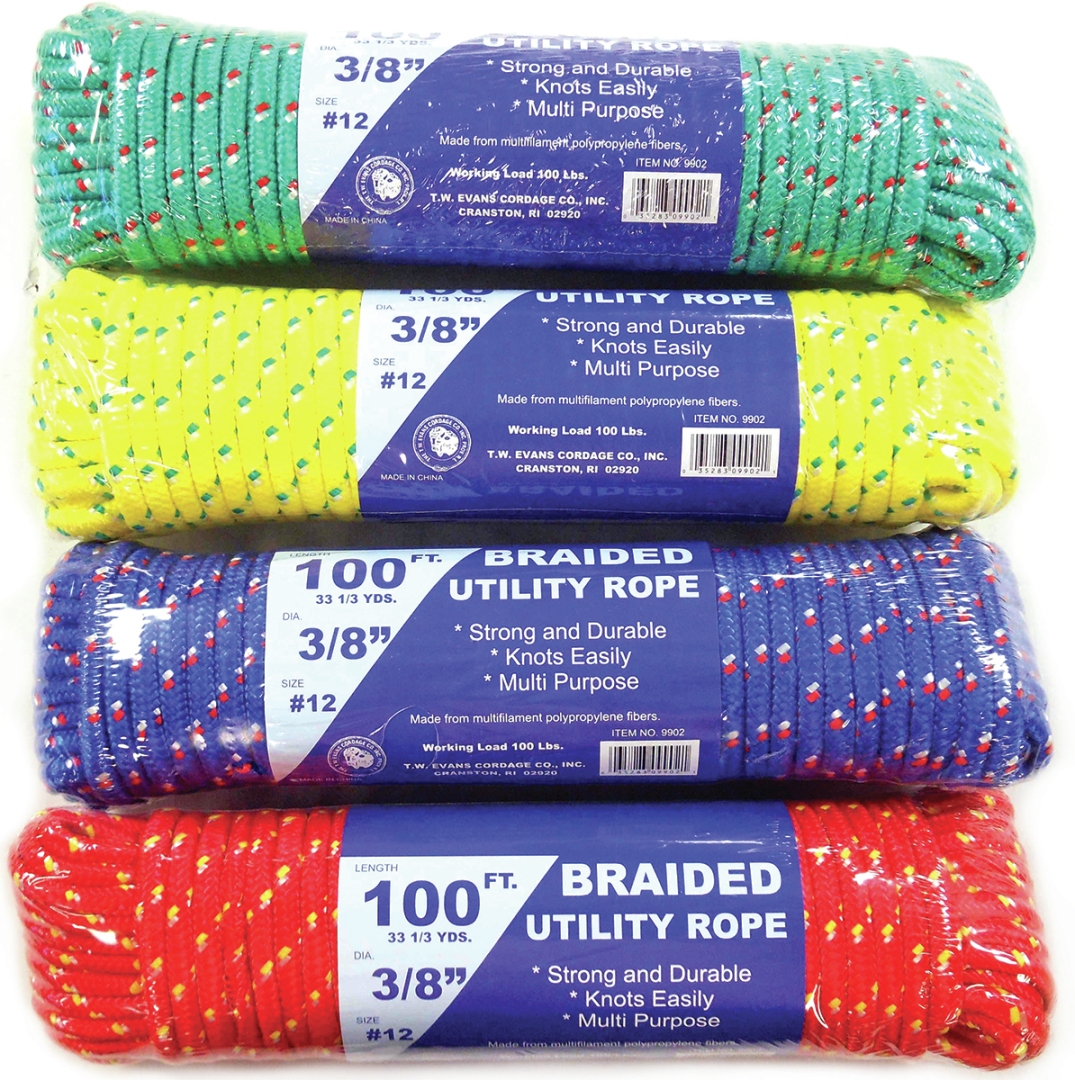 3/8" x 100' Braided Poly Utility Rope. Assorted Colors Per Case